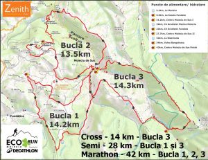 The Marathon course is made out of 3 loops forming the EcoRun Moieciu clover, the Start and the Finish are in Moieciu de Sus. Semi route is representing only part of the marathon – B1 and B3 loops.