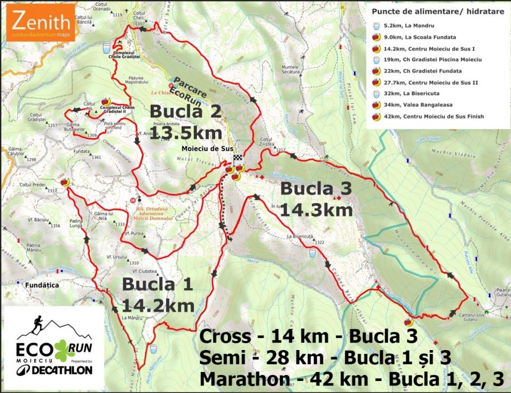 ☘️ Am adăugat o cursă de Semimaraton, de aproximativ 28Km, traseu care va parcurge 2 din cele trei bucle EcoRun – B1 si B3 – veți alerga pe cele mai frumoase poteci, ajungând în puncte renumite ale traseului – La Mândru, Fundata, Culmea Bisericuței și Guțanu.